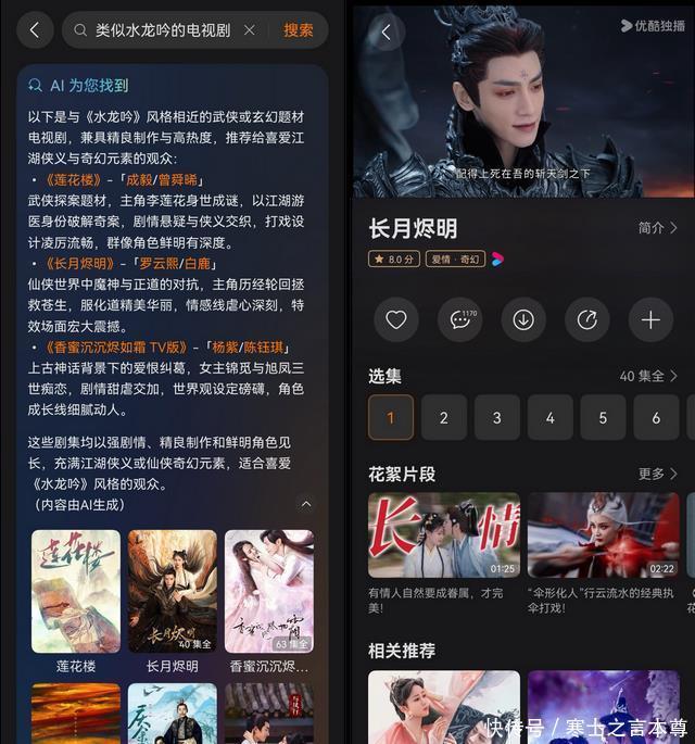 更让我惊喜的是华为视频“AI搜”功能。挤地铁赶公交都够手忙脚乱的了,还哪有时间挑选剧集,用AI搜就能轻松找出最符合我口味的热播剧,简直“香”到我的心坎里去了! 追平《水龙吟》的更新后,我怕未来等待期太长不过瘾,我在华为视频搜索框输入:“类似《水龙吟》的电视剧”。AI搜立即为我推荐了几部同类型剧集,让我从“剧荒”中瞬间得救。其中还有罗云熙之前主演的《长月烬明》,我打算下周通勤就看这部仙侠剧了。通勤路上,偶尔会想起某个剧集桥段或经典台词,却总记不起出处,别提多痛苦。现在,我也可以在搜索栏搜索,AI搜就能迅速定位剧集,就像我的“私人看剧顾问”。