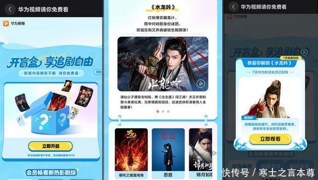 华为视频还有一个新用户的羊毛可以薅,对小艺说“我要追剧自由”,就有机会获得华为影视、优酷或腾讯的会员权益盲盒,我就抽中了7天华为影视会员,华为视频这个活动真的紧跟“潮玩”时事。