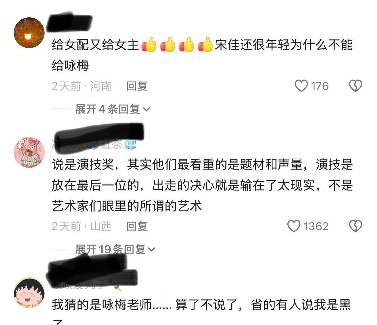 这篇文章无疑是咏梅在回应金鸡奖结果的一些质疑。