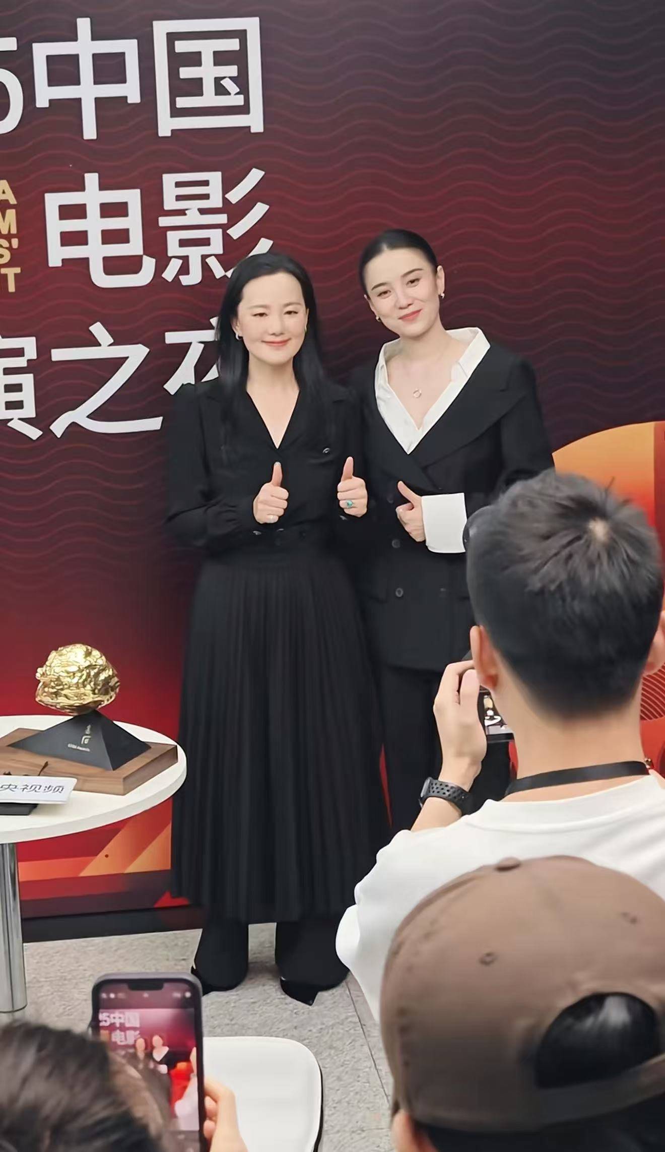 在今年的中国电影导演之夜中二人还在后台合影留念。