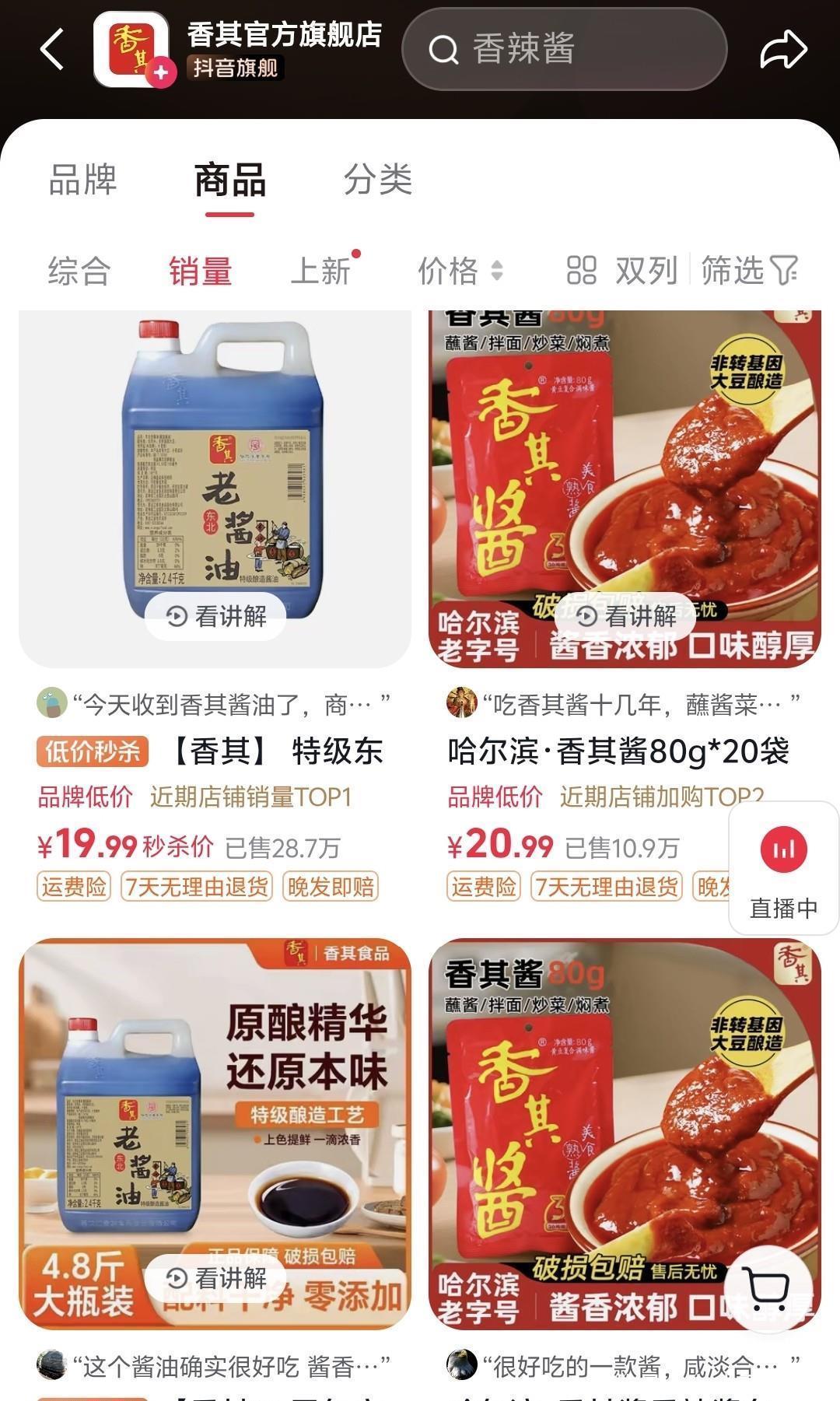 有人倒霉就有人站起来,竞品香其酱最近卖的非常好直播间都爆了,有的单品销量超过10万,这成绩除了酱本身好吃外,还有网友的转向。闫学晶老师说过一句话“能咋的,我就看着能咋地”。